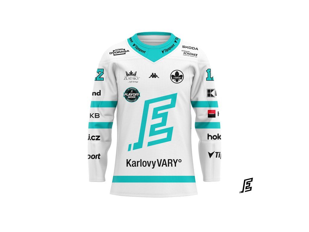 Play off dres HC Energie Karlovy Vary je speciální fanouškovský dres inspirovaný dresem, ve kterém tým nastupuje v bojích play off. Výrazný design v klubových barvách černé a tyrkysové doplňuje dominantní logo Energie na hrudi a řada partnerů, které k hokejovým dresům neodmyslitelně patří.