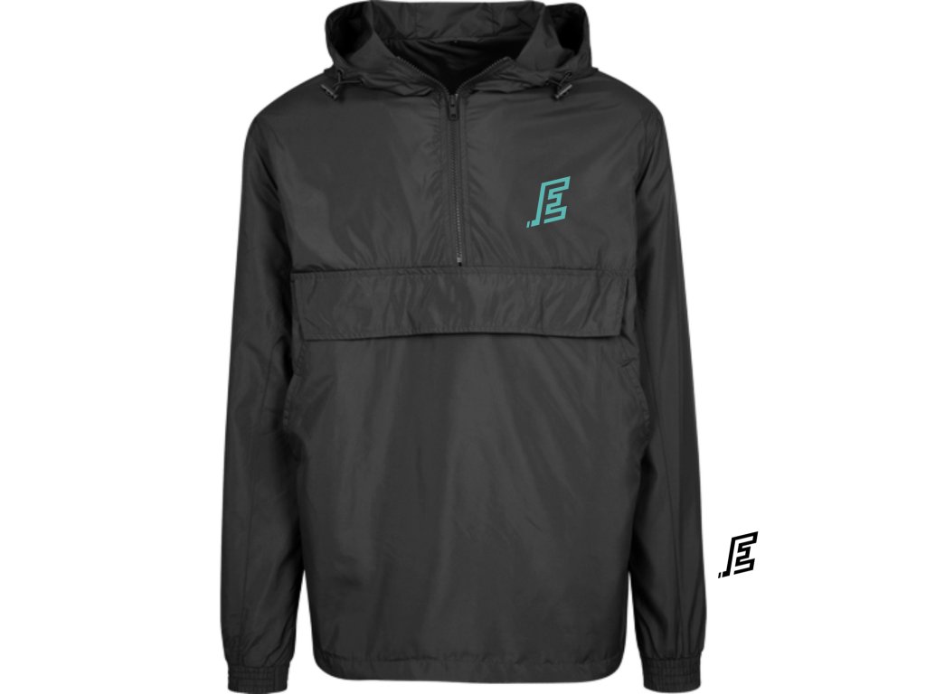 Lehká černá větrovka Minco HC Energie s kapucí, klokaní kapsou na břiše a praktickými kapsami po stranách. Ideální do města, na stadion i na trénink.