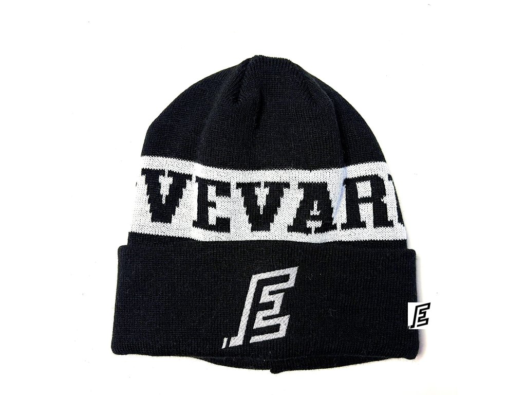 Černo bílá zimní čepice s vypleteným nápisem #VeVaru a klubovým znakem HC Energie. Hřejivý doplněk pro všechny fanoušky. Materiál: 100% polyacryl, vyrobeno v EU.